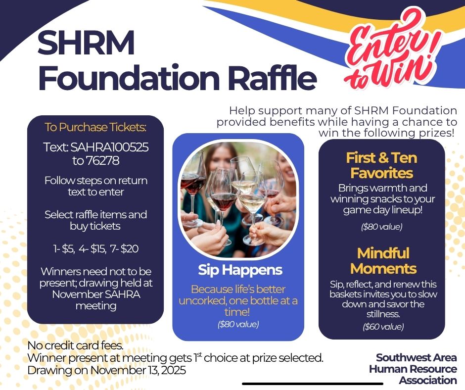 October is also Membership Month, drawings for renewals and bringing guests will take place in addition to the SHRM Foundation Raffle